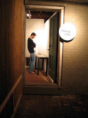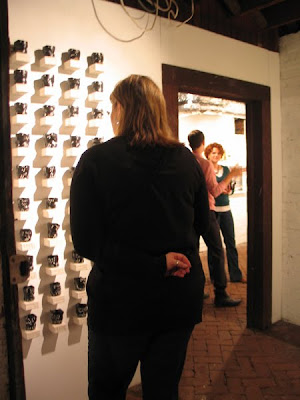 Conversion, an exhibition by Kelcy Chase Folsom opened on Thursday evening, October 22 at whitespec. Folsom’s intention is to tackle the process of deconstruction, rebirth and destruction. For over two years, Chase collected cast off shards and other discarded ceramic objects that covered his studio floor. Folsom had a choice, either dump the pieces or work with them. He chose the later and began sculpting the mass of stacked and strategically placed objects and by doing so, reconstructed a new aesthetic. He recorded this process with drawings and photographs. After the completion of each sculpture, he then smashed it to bits with a hammer. Next, he carefully and meticulously sieved and separated the materials into various gradients ranging from pebble-size to that of a fine powder therefore returning the ceramic to its original state. Five wall installations document Kelcy Chase Folsom’s very unique approach to working with clay.