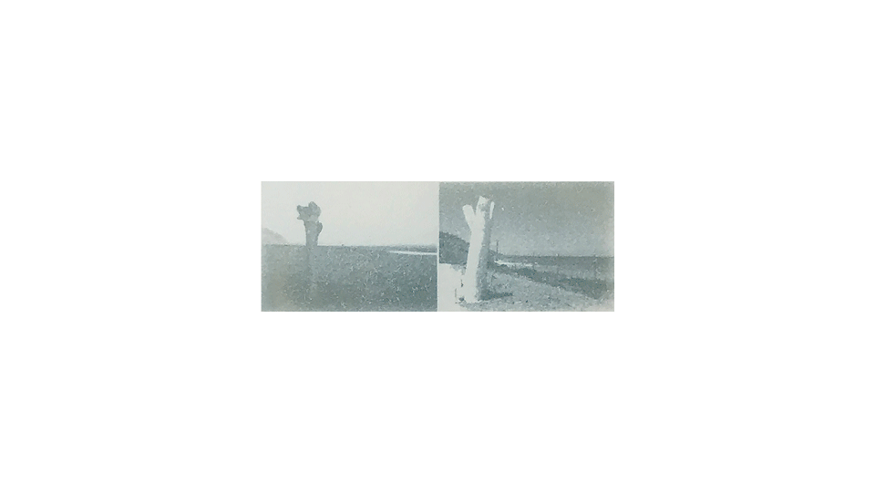 Sideroads in Stereoscope (looping animated gif, duration variable, 2020) combines imagery of Iceland and Sicily in side-by-side landscapes. The title borrows from the book of poetry Sideroads by the late Icelandic poet Jonas Thorbjarnarson who died in Italy in 2012. The looping gif consists of close to 200 postage-stamp sized, toned cyanotypes of the Icelandic and Sicilian landscape that bear uncanny resemblances to one another. Often shot by the artist through the windows of moving cars or while walking in remote areas like lava tubes, basalt caves and rocky beaches, these quickly-framed images are presented side-by side as if they were two views of the same scene from slightly different perspectives, as would be done to create a stereoscope, a photographic effect that fools the eye into superimposing two scenes, resulting in the sensation of seeing an image in 3-D. The flickering pace, distortion and small scale assist in putting the focus on the similarity of the forms rather than the details of the two landscapes, which, devoid of their natural colors, could be confused one for the other. This mimics the sensations of dislocation experienced by the artist during an intense sequence of consecutive trips between the two volcanic terrains in a single year.